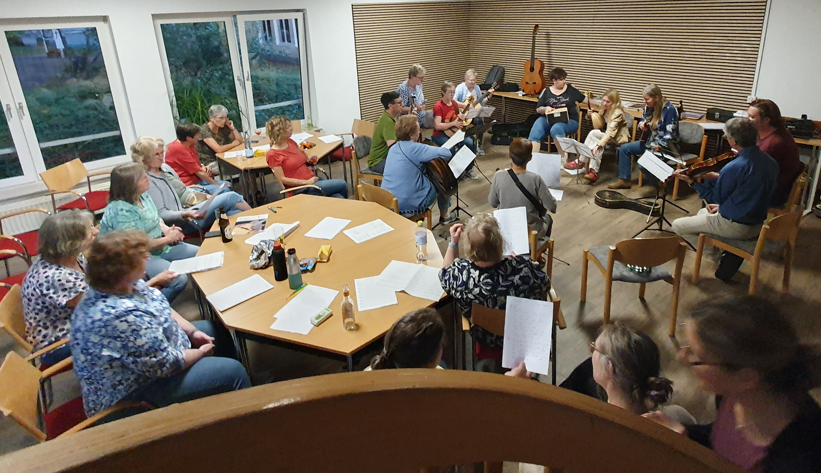Wer wollte, konnte in den kommenden Tagen gleichfalls noch in einem der weiteren Workshops in die Grundlagen des Dirigats, des Akkordspiels, der Liedbegleitung oder der Folk-Mandolinen-Musik eingewiesen werden. Diese Kombination verschiedener musikalischer Angebote sollte auch den Ablauf der nächsten Tage bestimmen.